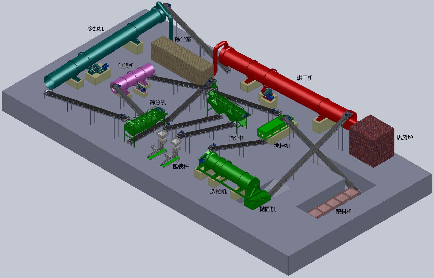 烘干后的顆粒再通過輸送帶抵達冷卻筒進行冷卻.