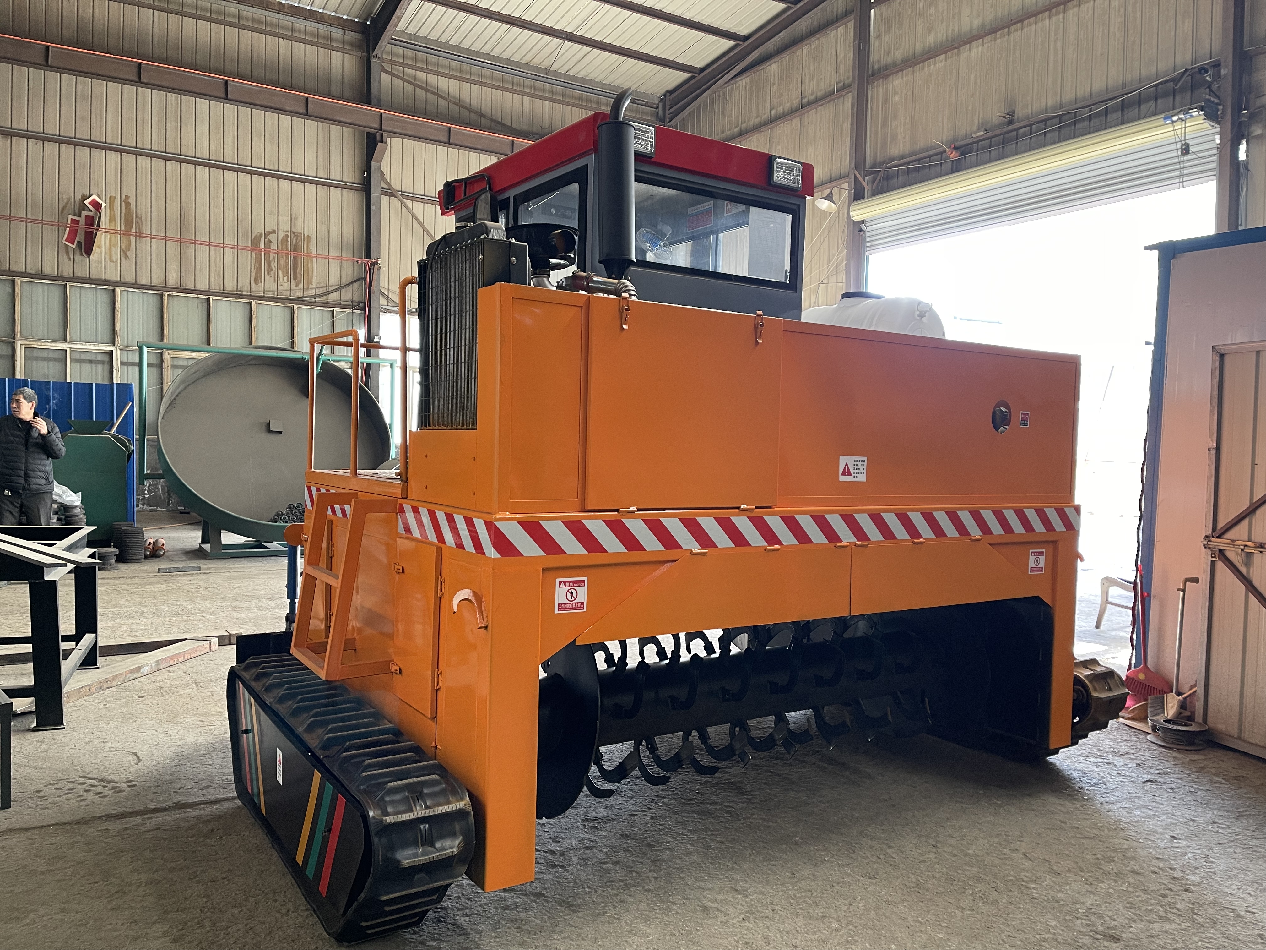 履帶式翻堆機的型號是由很多的,它采用的是地面條堆發酵生物有機肥方式,更好的將地面的垃圾,糞便等發酵翻堆。它的特點就是投資少,回報大,耗能低,成本低,效果高。它主要是應用在養殖場中的,像是牛場,羊場等類型的養殖場。它可以將物料實施攪拌、破碎,在好氧條件下進行有機物的分解,既提高發酵速度,又有效防止了發酵過程中硫化氫、胺氣等有害、惡臭氣體的產生,有利環保要求,提高肥效。它采用的是柴油機作動力,四輪行走,動力經傳動系統到達攜帶組合刀具的滾筒進行工作。質量可靠,所以說性能穩定,操作流程簡單。